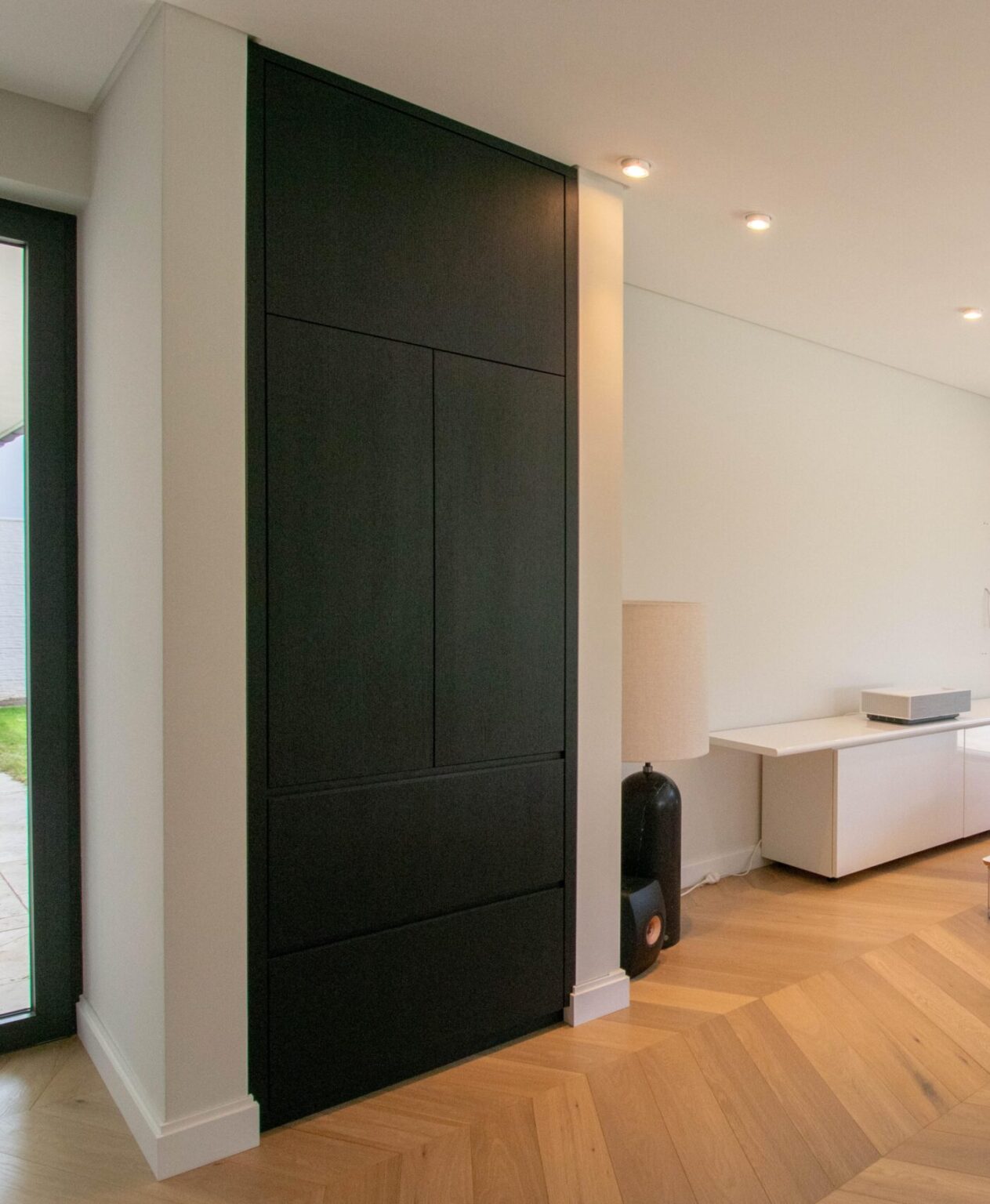 Für einen modernen Wohnbereich entstand ein individuell gefertigtes Schrankelement, das durch Materialwahl und klare Linien besticht.