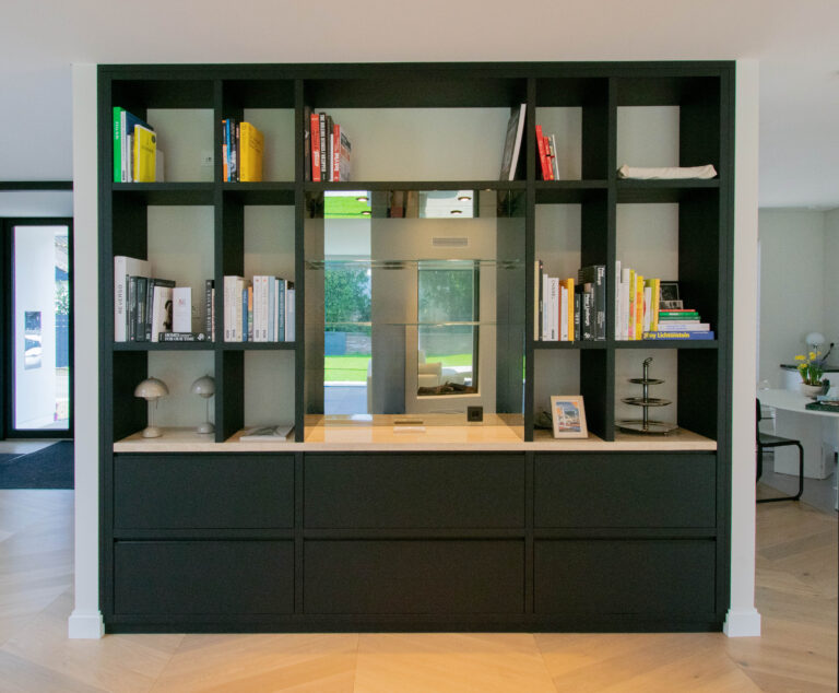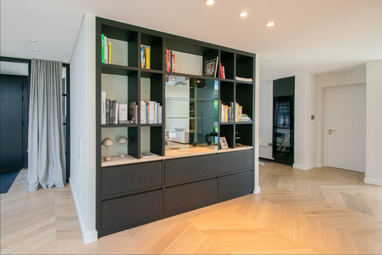 Das Ergebnis ist ein elegantes, modernes Möbelstück, das praktische Stauraumlösungen bietet und sich gleichzeitig nahtlos in den Wohnbereich einfügt.